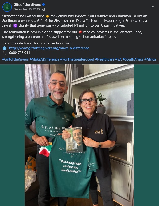 Imtiaz Sooliman (founder and leader of Gift of the Givers) has repeatedly made statements invoking classic antisemitic conspiracy tropes about Jewish/Zionist global control through money, fear, power, and influence. Critics (including the South African Jewish Board of Deputies, SA Jewish Report, JNS, and analysts like David May of the Foundation for Defense of Democracies) describe these as antisemitic because they echo longstanding myths of Jewish world domination, often using “Zionists” as a substitute for “Jews” while denying the label of antisemitism and accusing critics of abusing the term.